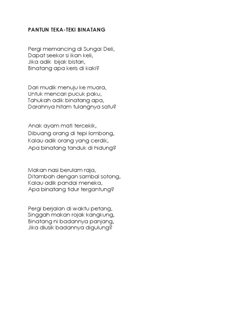 Pantun teka teki haiwan dan jawapan adinasinc pantun teka teki haiwan dan.